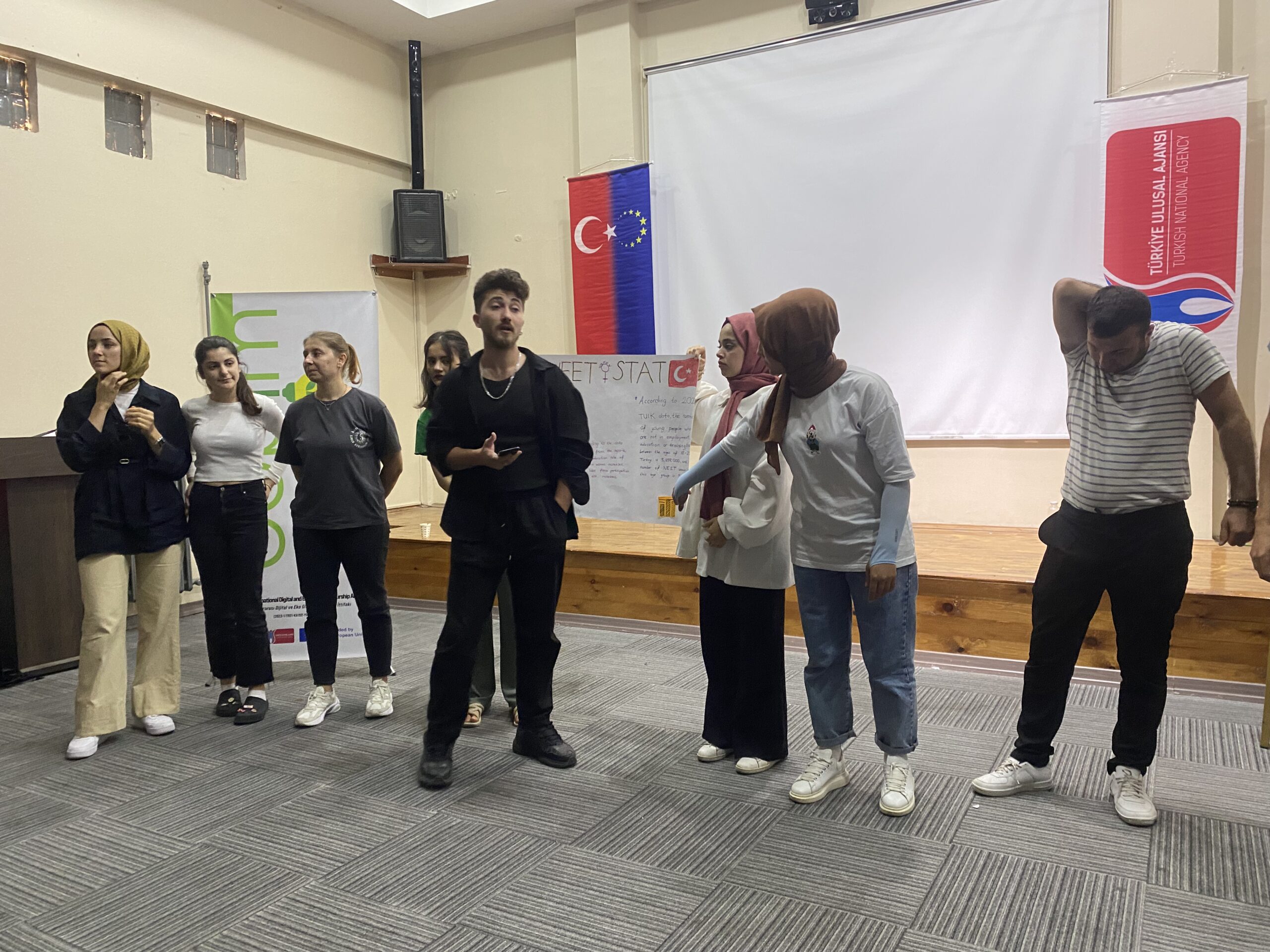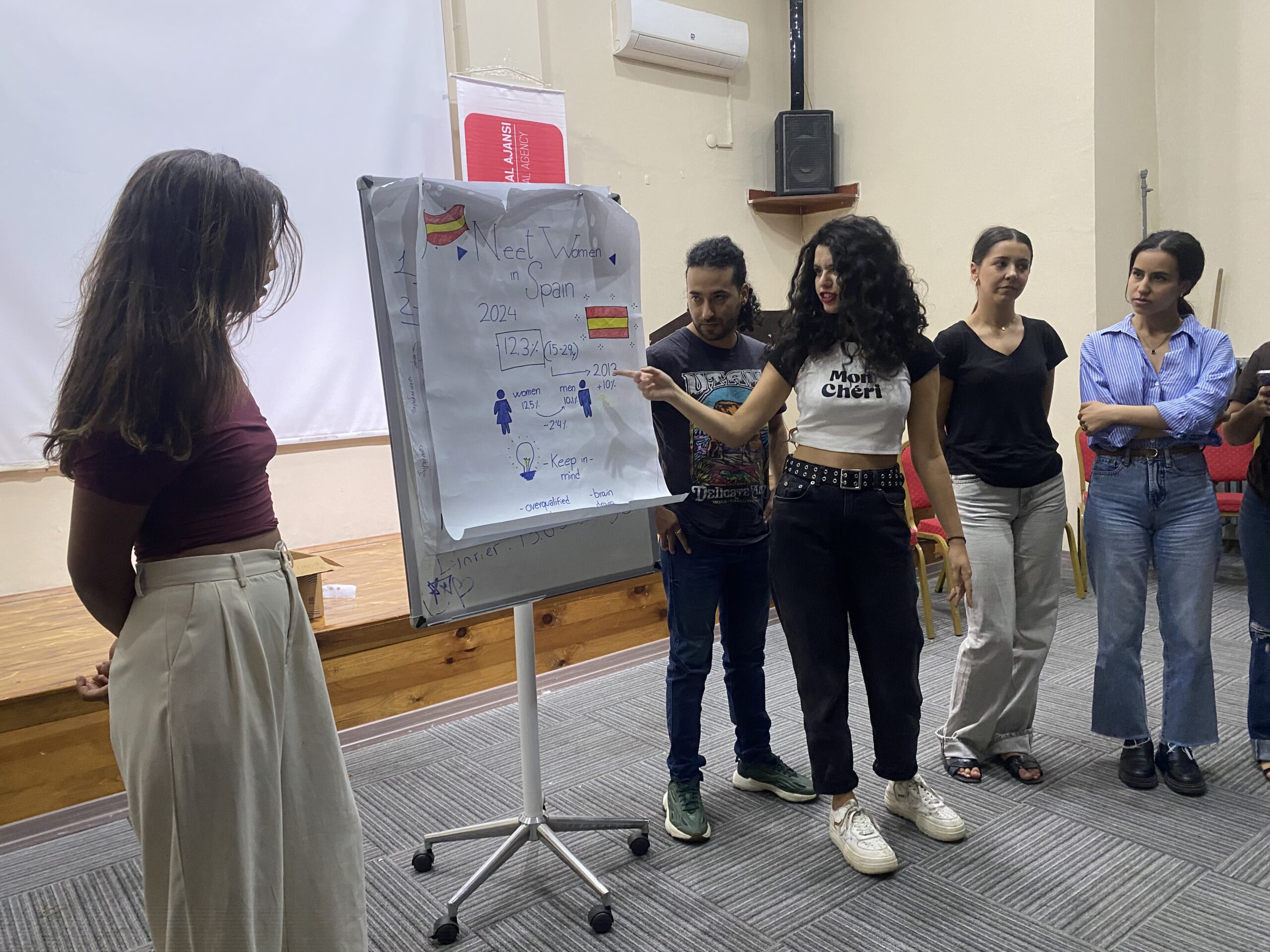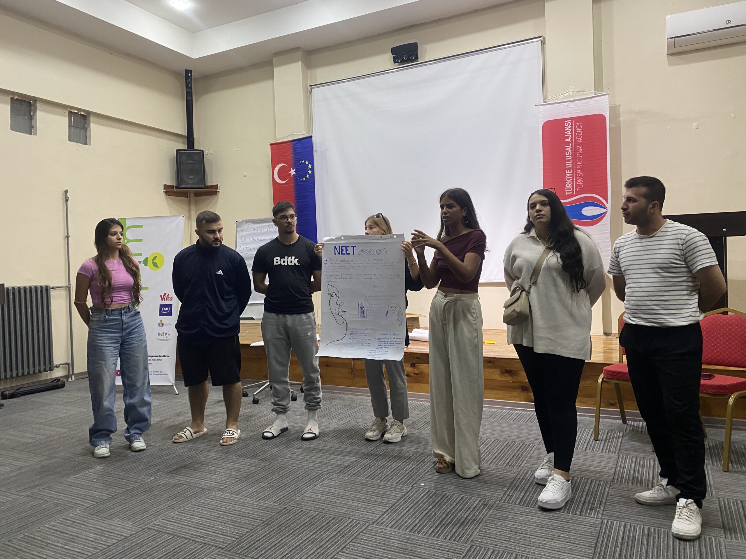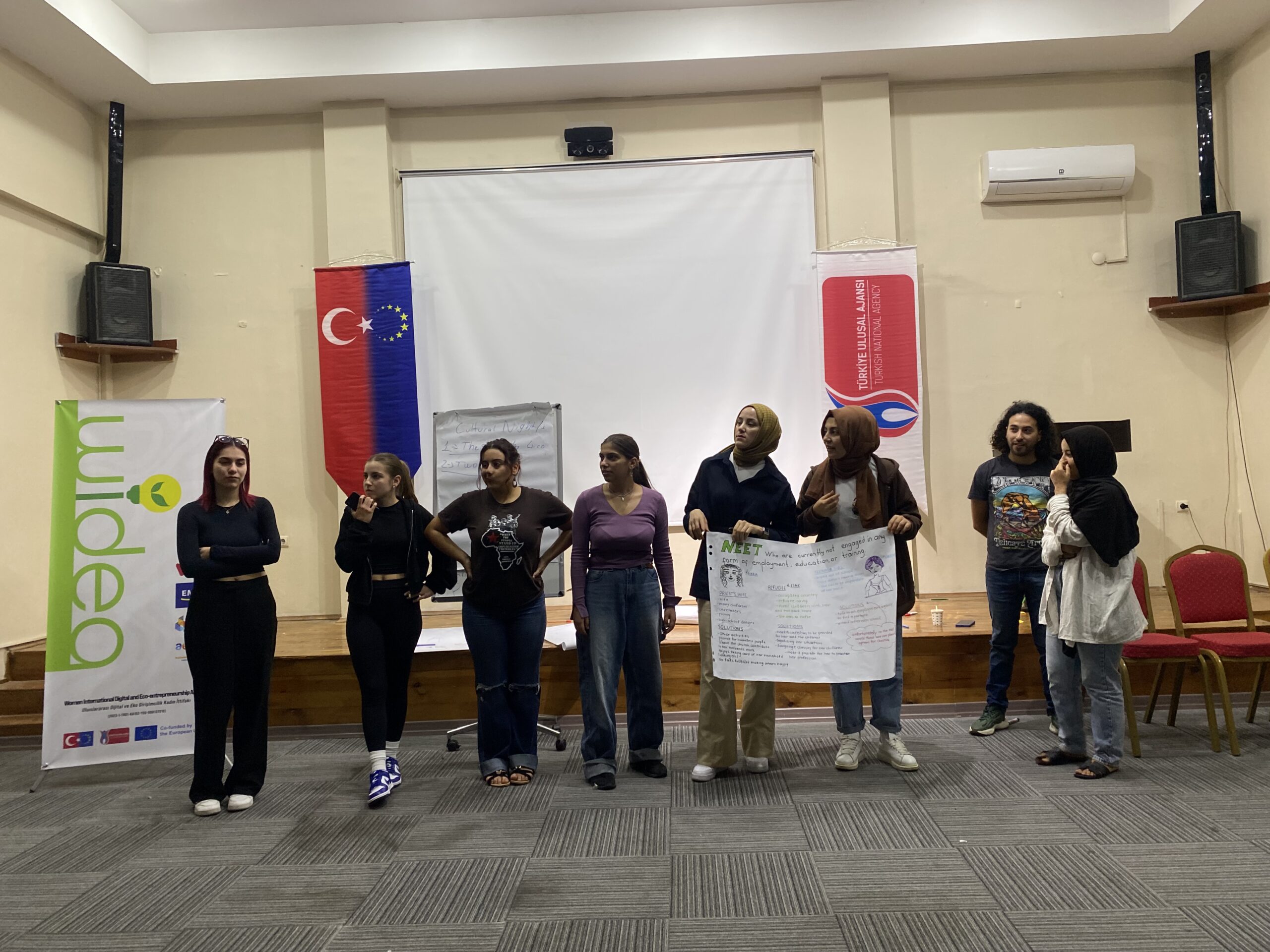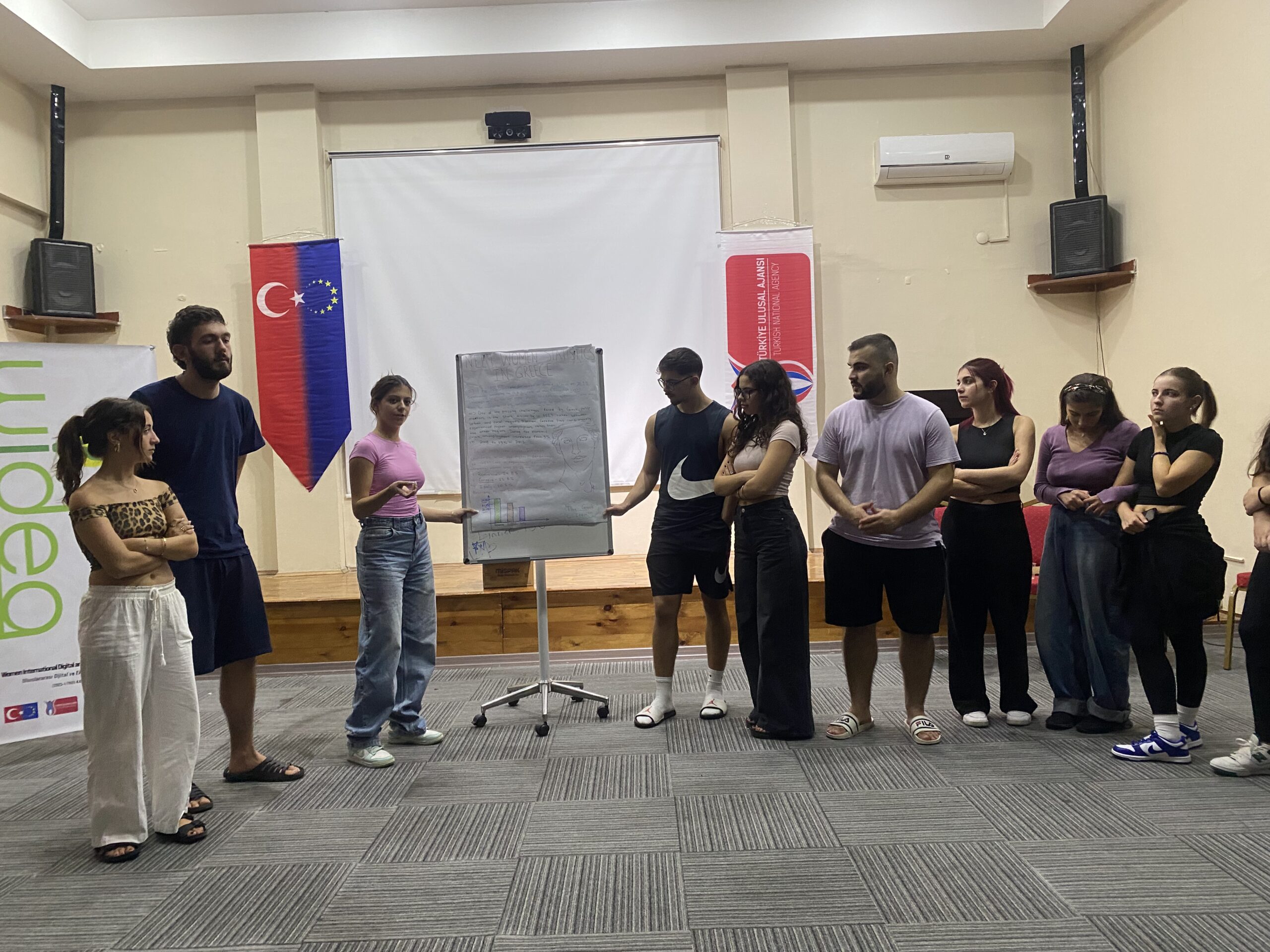 Araştırma Aşaması: Proje ortaklarının bulunduğu Türkiye, Yunanistan, İspanya ve Fransa’da sahaya inen katılımcılar, kendi ülkelerindeki NEET kadınların mevcut durumunu, karşılaştıkları zorlukları ve ihtiyaçlarını araştırdılar. Ayrıca her ülkede genç kadın girişimciliğinin önündeki engeller, mevcut fırsatlar ve başarılı girişimcilik örnekleri dijital ve eko-girişimcilik boyutunda incelendi. Bu araştırmalar sayesinde katılımcılar farklı ülkelerde kadınların girişimcilik ekosistemine katılımını kısıtlayan faktörleri ve bu alandaki iyi uygulamaları derinlemesine öğrenme imkanı buldu. Her bir ülke ekibi elde ettiği bulguları rapor ve sunum haline getirerek çalıştay hazırlıklarını tamamladı.