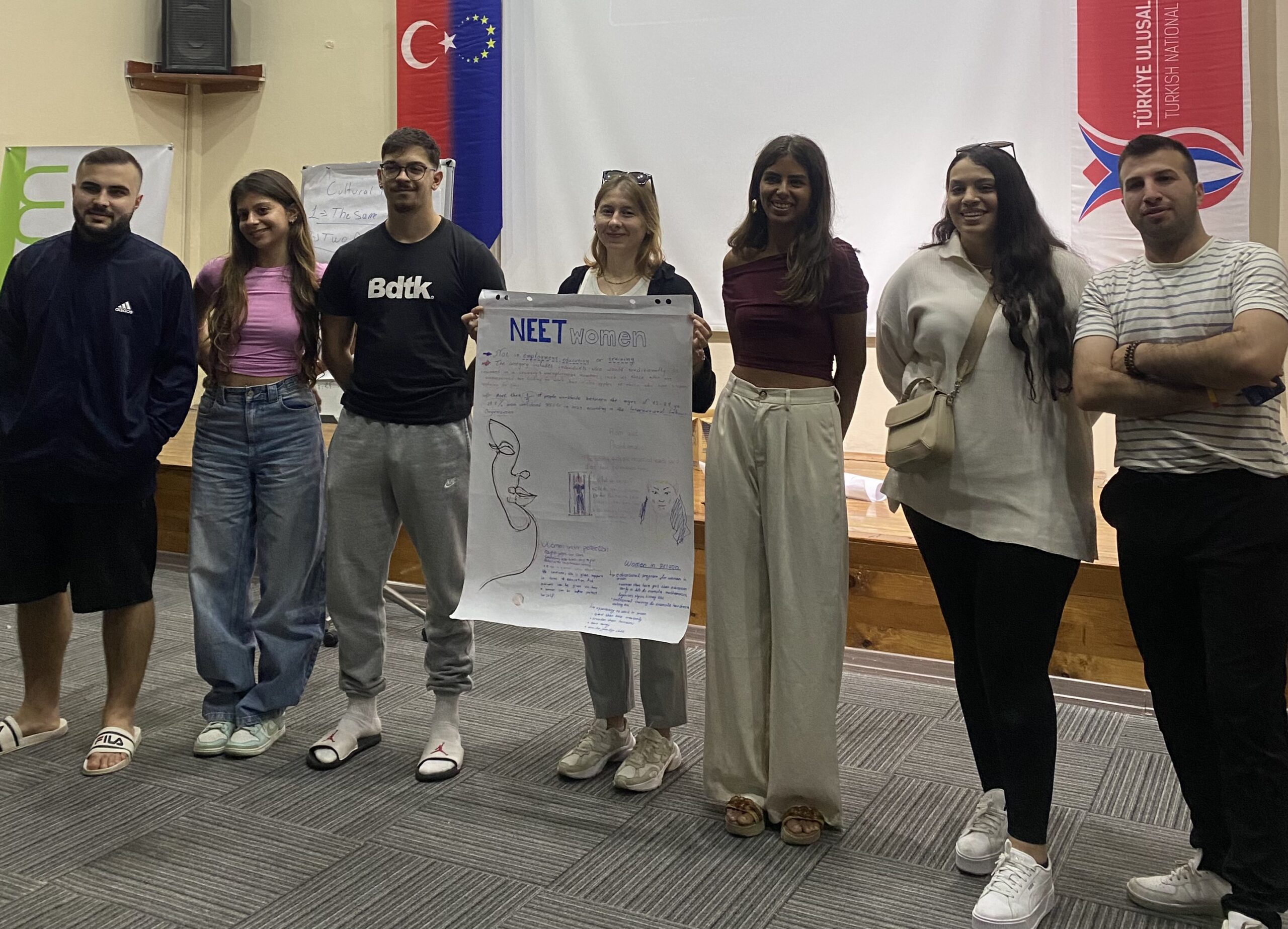 Ekim 2024’te İstanbul’da 7 gün süren uluslararası bir çalıştay organize edildi. Çalıştayın ilk dört gününde her ülke ekibi kendi ülkesindeki NEET kadınların durumuna ilişkin bulguları sundu. Ülke sunumları, o ülkedeki dijital ve eko-girişimcilik fırsatlarını, genç kadın girişimcilerin karşılaştığı engelleri ve başarılı girişim örneklerini aktaran interaktif oturumlar şeklinde gerçekleşti. Örneğin ilk gün Türkiye ekibi ülkedeki NEET kadınların durumunu paylaştı; dijital ve yeşil girişimcilik özelinde karşılaşılan engelleri ve fırsatları tartıştı. Ardından Türkiye’deki başarılı kadın girişimleri örnekleri sunularak bu başarıların ardındaki faktörler katılımcılarla birlikte analiz edildi. Benzer şekilde ikinci gün Yunanistan, üçüncü gün İspanya, dördüncü gün Fransa ekipleri kendi ülkelerinin deneyimlerini ve iyi uygulamalarını aktardılar. Her sunumun sonunda soru-cevap bölümleriyle bilgi alışverişi desteklendi. Oturumlar boyunca genç kadın girişimcilerin yararlanabileceği ulusal ve uluslararası hibe ve destek programları da tanıtılarak katılımcıların somut fırsatlar hakkında bilgi edinmeleri sağlandı.
